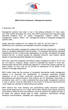 IMPA position on Management Systems